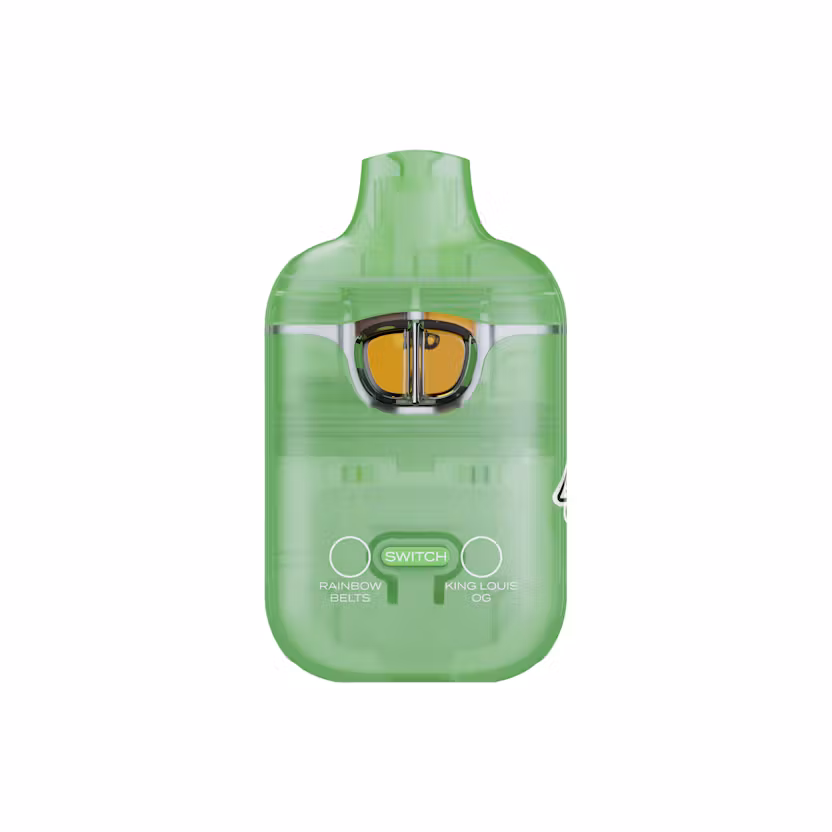The Switch V3 Rainbow Belts x King Louis OG combines dual-chamber design, live liquid diamonds, and full-spectrum extracts to deliver potency, consistency, and convenience. Perfect for evening relaxation, stress relief, or recovery sessions, this device provides a professional-grade Indica experience in a sleek, portable format.